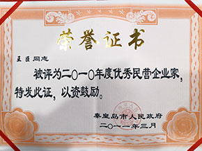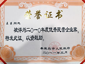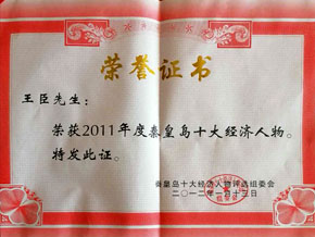 - 6、2011年董事長王臣被評為2011年度秦皇島十大經(jīng)濟(jì)人物